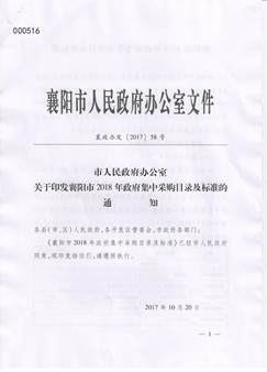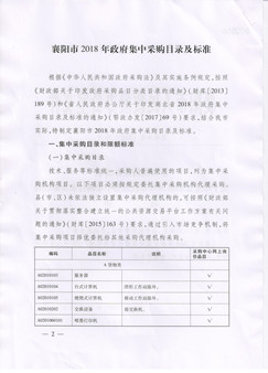 关于印发襄阳市2018年政府集中采购目录及标准的通知